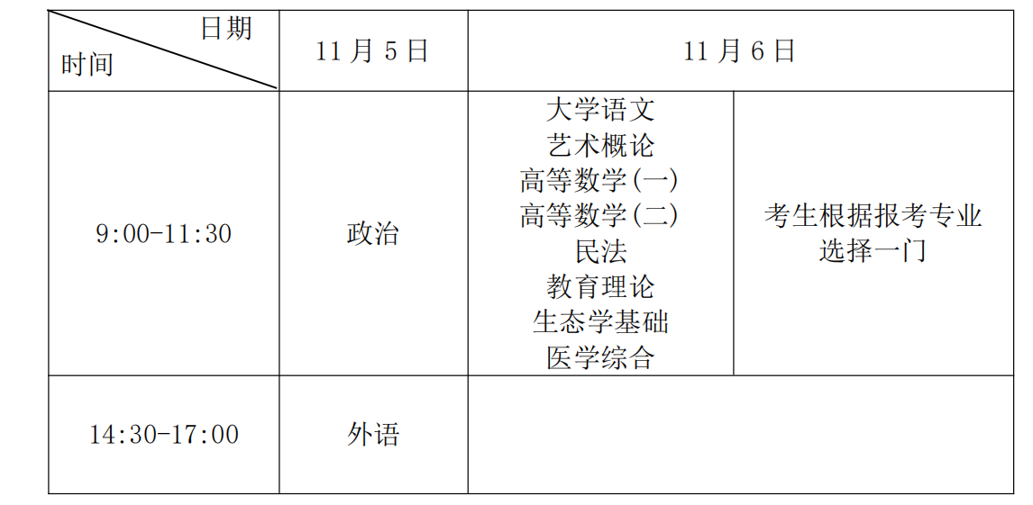 文史、中医类:政治、外语、大学语文。