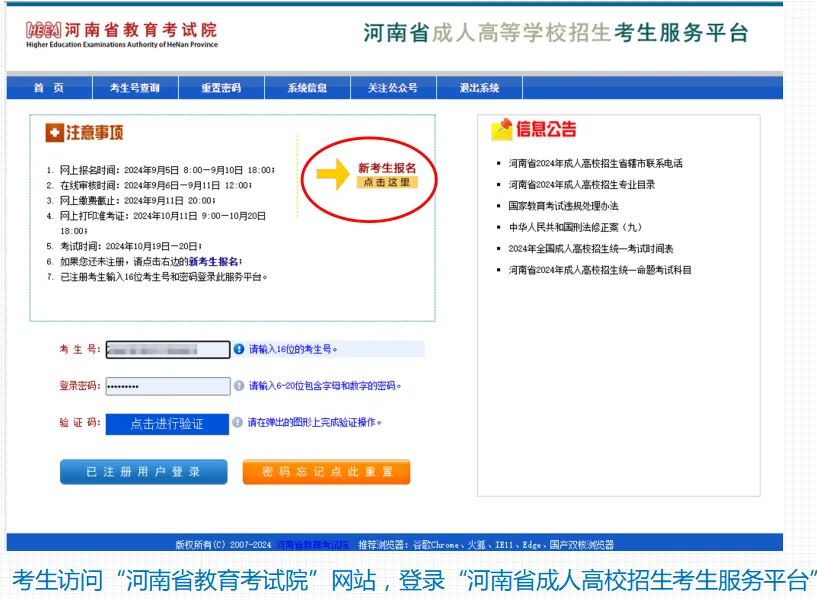 河南省2024年成人高校招生考生网上报名流程