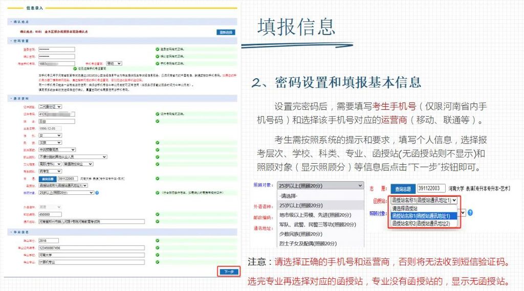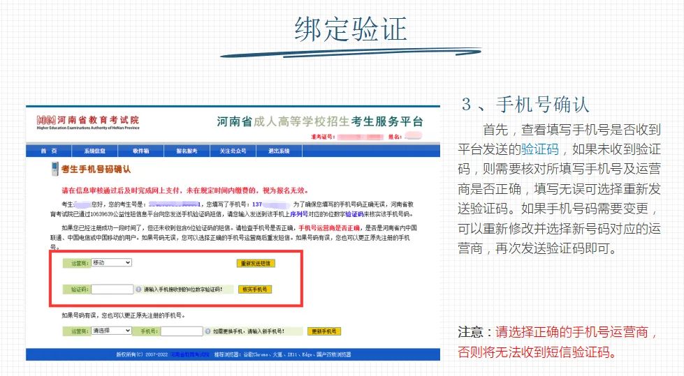 1、手机号归属地必须是河南省内,携号转网的考生需要选择对应的运营商;