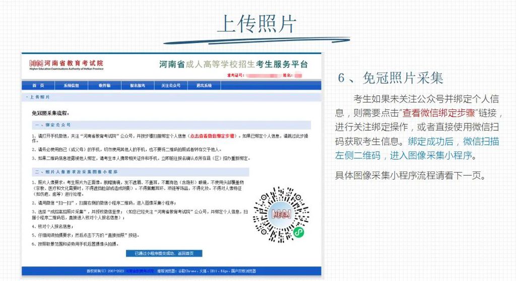 3、考生需要通过图像采集小程序采集免冠照和证件信息;