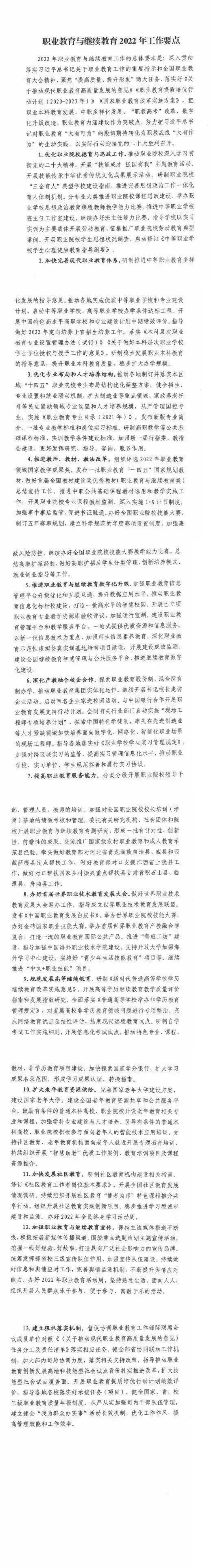 职业教育与继续教育2022年工作要点