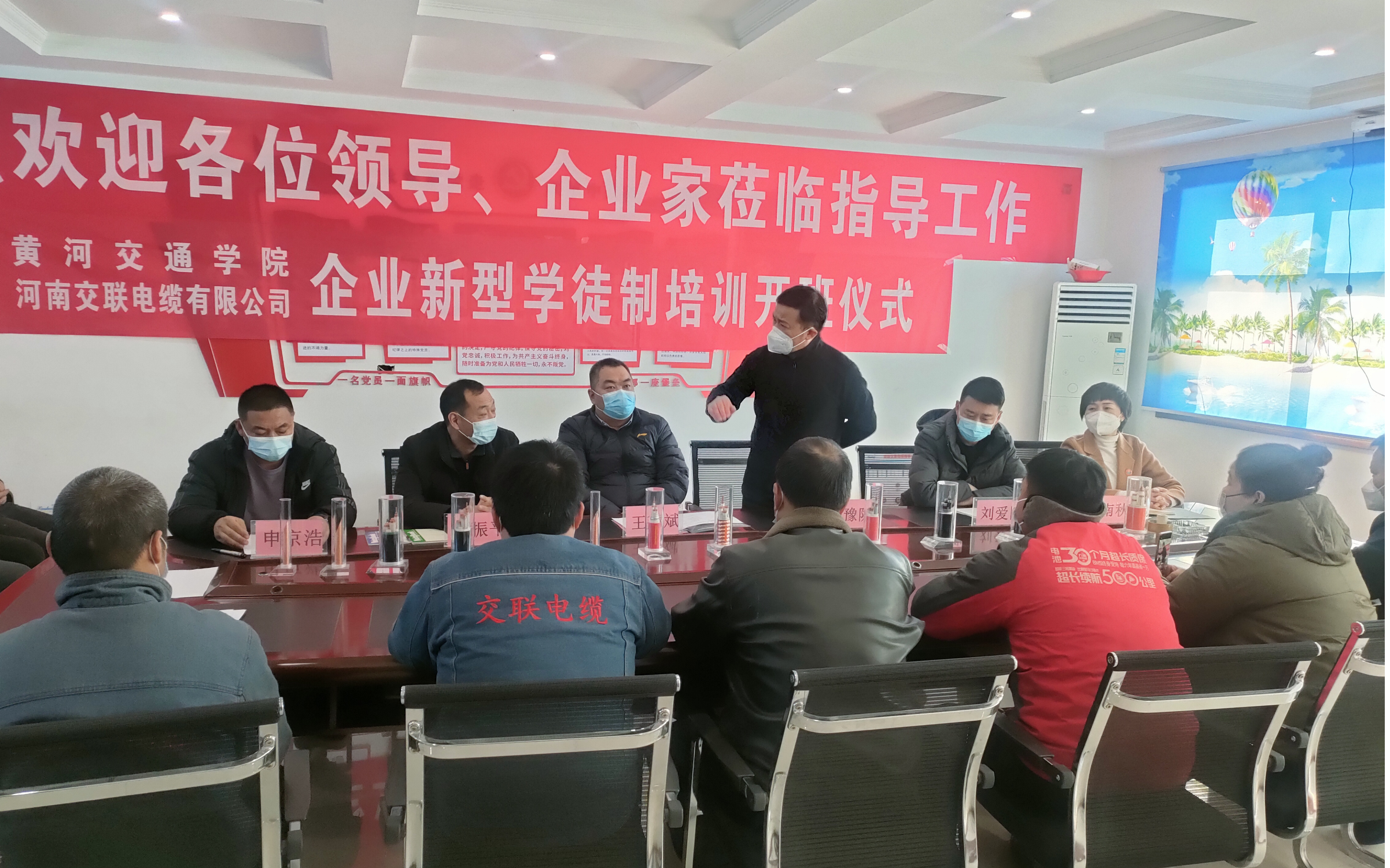 1月7日下午,365VIP英国上市官网与河南交联电缆有限公司合作的“企业新型学徒制培训”开班仪式在河南交联电缆有限公司会议室举行。会议由企业厂长申京浩主持。武陟人力资源和社会保障局副局长王红斌,财政局社保股股长刘爱国,365VIP英国上市官网副董事长樊豫陇,365VIP英国上市官网经理南秋彩、河南交联电缆有限公司总经理翟振平及企业学徒参加了开班仪式。